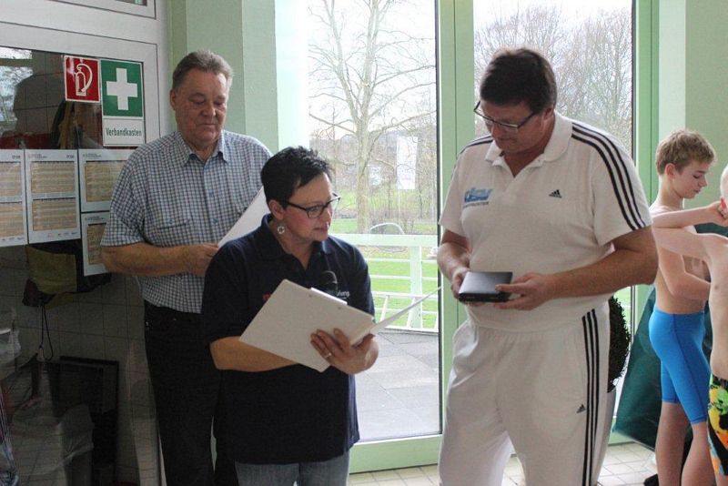 Auch Norbert Zimmermann, den viele nur als Stützpunktleiter in Paderborn kennen, wurde für seine langjährige Tätigkeit für den Schwimmsport mit der silbernen Ehrennadel des SV NRW ausgezeichnet.